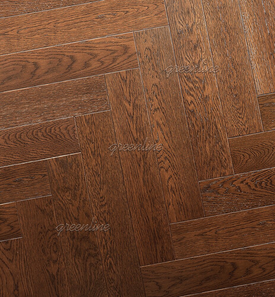 Паркет ёлка Greenline 130 Дуб Леон английская 15х110х600