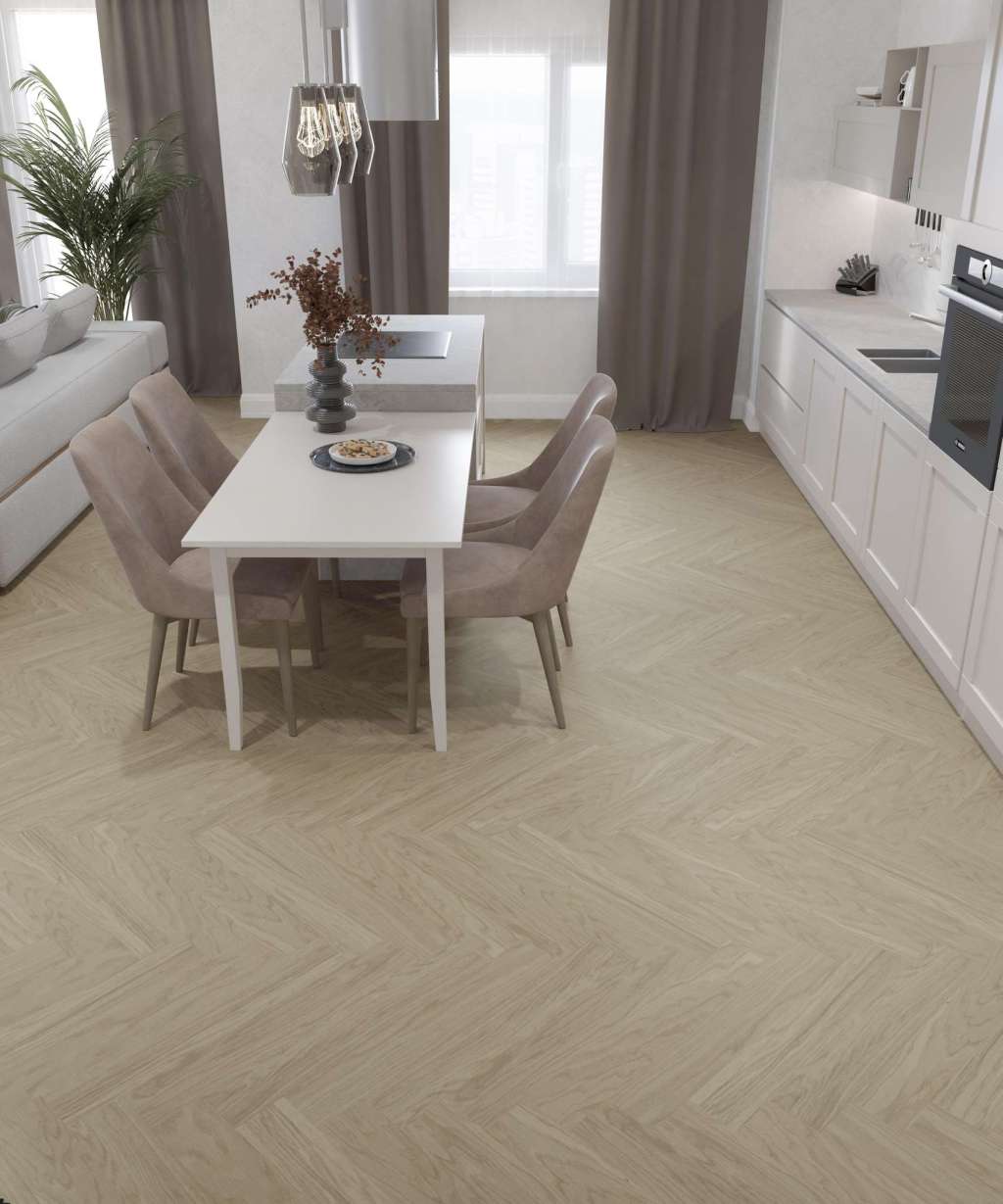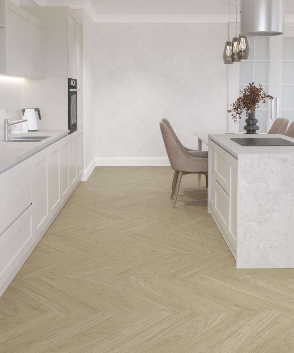Динамичный рисунок "ёлочки" оживляет помещение: направляющие линии формируют визуальную глубину и мягкую игру света, а брашированная текстура дуба передаёт тактильную тёплую фактуру натурального дерева. Esta Parket модель "14502 Oak HB Nova Elite Pure Line" вписана в историческую традицию паркетных решений, где селекция Натур Elite подчёркивает естественность породы. Конструкция с толщиной 13 мм при ширине плашки 120 мм и длине 725 мм покрыта UV-лаком, что сохраняет чёткость геометрии рисунка при ручной укладке, требующей мастерства мастера. Паркет обладает реставрационным потенциалом и выгодно смотрится в классических и представительских интерьерах, где важны точность рисунка и визуальное тепло древесной фактуры.