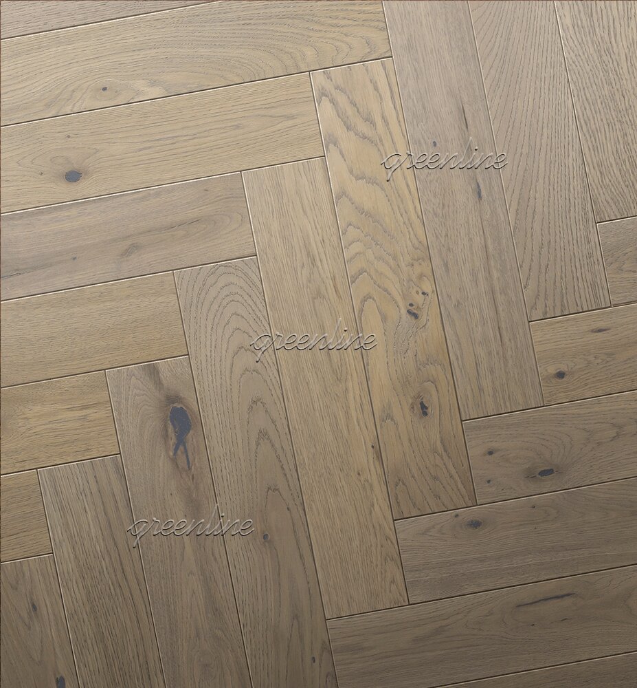 Дизайн этого паркета делает акцент на натуральности и историчности, где классическая ёлочка превращается в выразительное архитектурное решение с живой игрой света и тёплым древесным характером. Модель Greenline "409 Сайма 15х125х620" выполнена из дуба селекции рустик и отсылает к европейским традициям, когда ёлочные узоры придавали пространству статус и глубину. Динамичный рисунок образует направляющие линии, усиливающие перспективу помещения, а светлый бежевый тон подчёркивает объём и фактуру брашированной поверхности. Толщина составляет 15 мм; плашка имеет ширину 125 мм и длину 620 мм; укладка выполняется вручную мастером, что раскрывает точность геометрического рисунка и плотность стыков. Браширование в сочетании с лаком УФ усиливает тактильные ощущения и визуальную теплоту дубовой структуры. Плашки сохраняют реставрационный потенциал и органично вписываются в интерьер квартиры, где ценится классический стиль и долговечность декоративного решения; произведено в России.