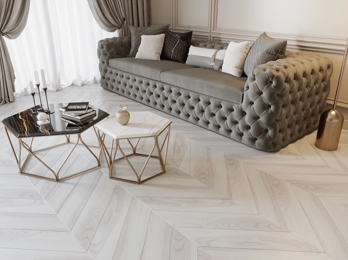 CBM "503A/С Ясень Сазава" сочетает дизайн «французская елка» с высокой износостойкостью класса 33, что делает покрытие уместным для жилых помещений и коммерческих зон с интенсивной проходимостью. Толщина 12 мм обеспечивает стабильность и запас прочности, влагостойкая конструкция снижает риск разбухания, пожарная безопасность соответствует классу КМ3. Замковая система Single Click упрощает скрытую плавающую укладку и сокращает время монтажа; совместимость с тёплым полом расширяет варианты применения, подложка в комплект не входит. Формат планки 129/129.3×728/729.6 мм, фаска по четырём сторонам и гладкая матовая поверхность придают естественный вид ясеня и упрощают ежедневный уход — достаточно тёплой влажной уборки. Производство Чехия, древесный декор ясеня и разумная цена делают продукт экологичным и экономичным выбором для ремонта.