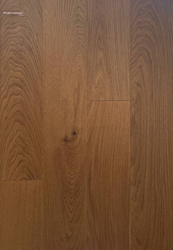 Greenline "620 Дуб Скайлайн 12х150х1285" - однополосная инженерная доска в светло-коричневых тонах с брашированной текстурой дуба и селекцией Натур, визуально подчёркивающей натуральный рисунок древесины и состаренные прожилки. Трёхслойная конструкция толщиной 12 мм обеспечивает высокую геометрическую стабильность при сезонных колебаниях влажности, фаска с четырёх сторон добавляет выразительности стыкам, замковое соединение упрощает монтаж. УФ-лак на поверхности придаёт стойкость к истиранию и облегчает уход в жилых помещениях. Благодаря инженерной структуре доска совместима с тёплым полом при соблюдении монтажных рекомендаций и температурных лимитов, а при достаточной толщине верхнего слоя возможна реставрация шлифовкой, что продлевает срок службы и сохраняет первоначальную фактуру древесины на долгие годы.