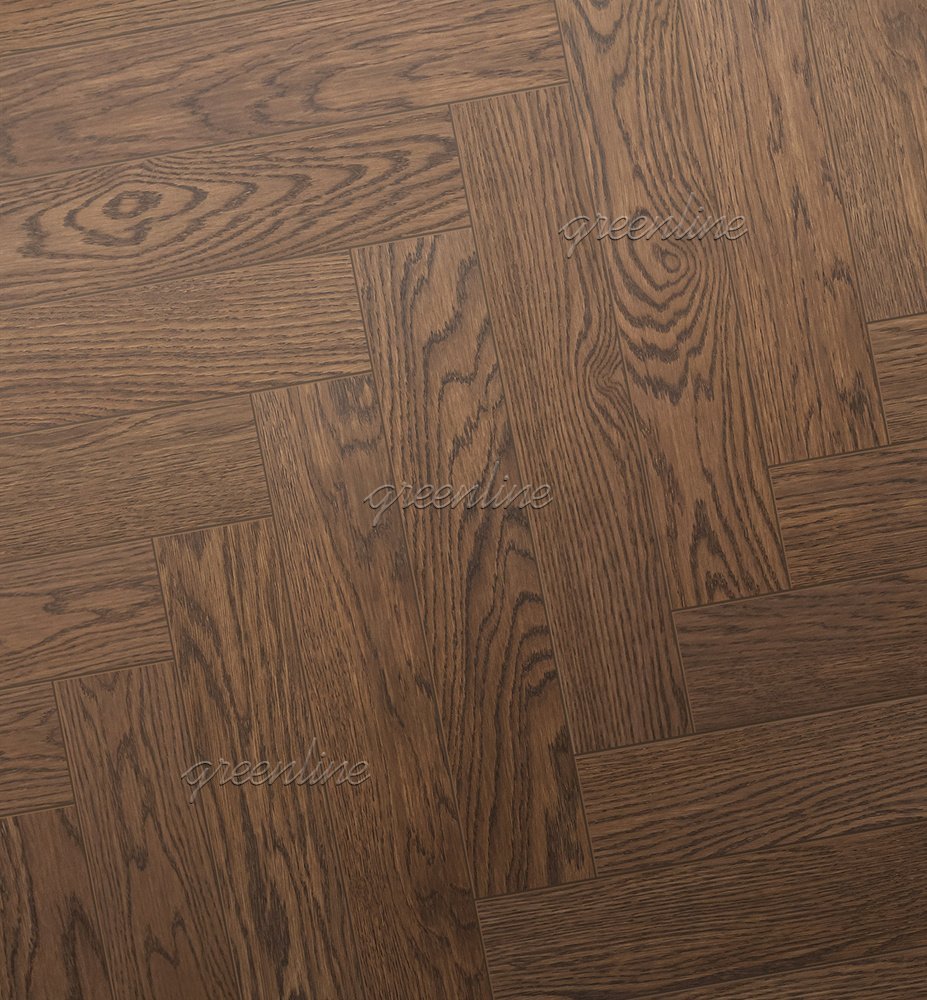 Паркет ёлка Greenline 822 Дуб Нейтрон английская 15х110х600