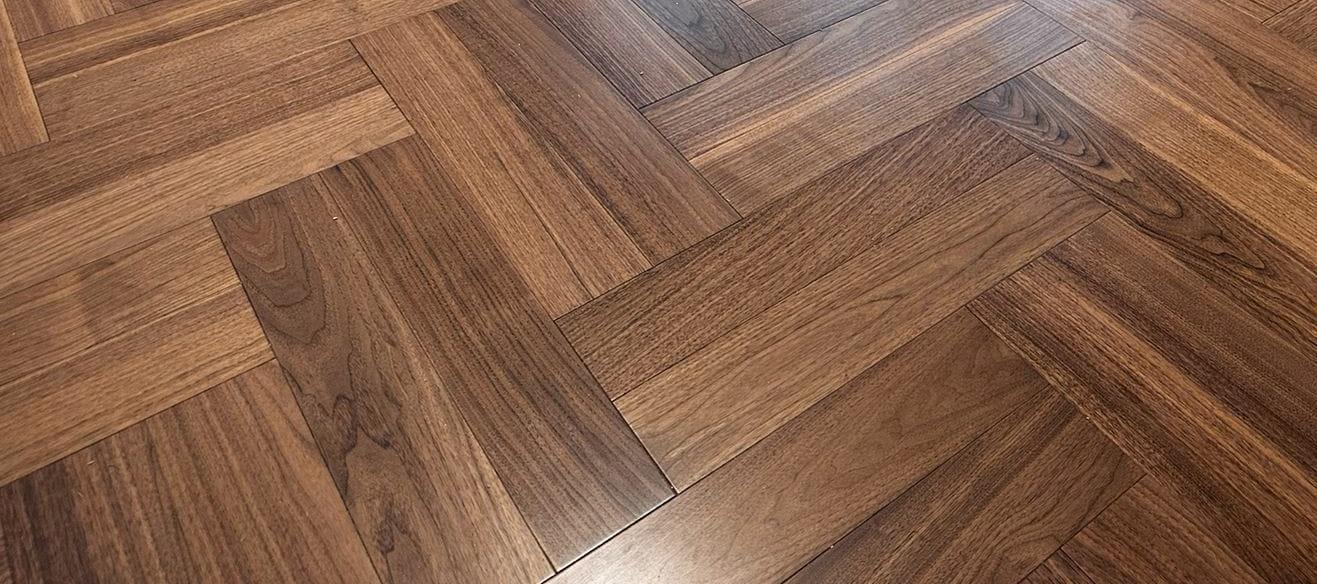 Паркет ёлка HM Flooring Орех Американский селект (Herringbone) лак