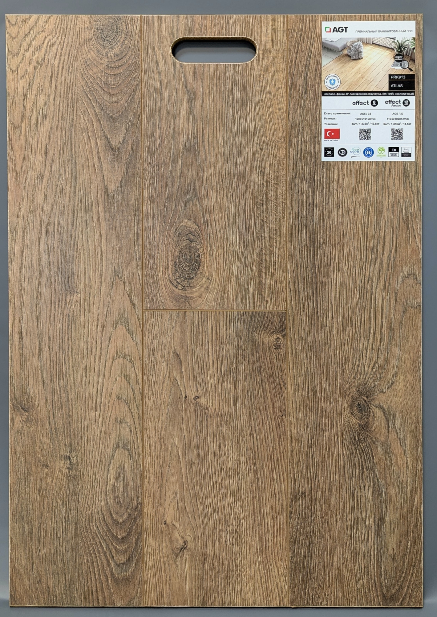Под дерево, однополосный дизайн AGT «Атлас» в светло‑коричневых тонах сочетает реалистичную текстуру дуба с тиснением в регистр; главное преимущество повышенная прочность при интенсивной нагрузке (класс 33) и толщина 12 мм, что обеспечивает стабильность и сопротивление продавливанию. Рекомендуется для жилых и общественных помещений с высокой проходимостью: коридоры, гостиные, офисные зоны и торговые площади с умеренной влажностью. Замковое соединение упрощает быстрый бесклеевой монтаж, фаска по четырём сторонам подчёркивает натуральный рисунок, размеры 154,5×1195 мм создают эффект цельной доски. Влагостойкое исполнение облегчает уход и увеличивает срок службы; применение с тёплым полом возможно при соблюдении температурных ограничений и рекомендаций по подложке. Производство в Турции, экологическая направленность и доступная ценовая политика делают модель практичным и экономичным решением для ежедневной эксплуатации.