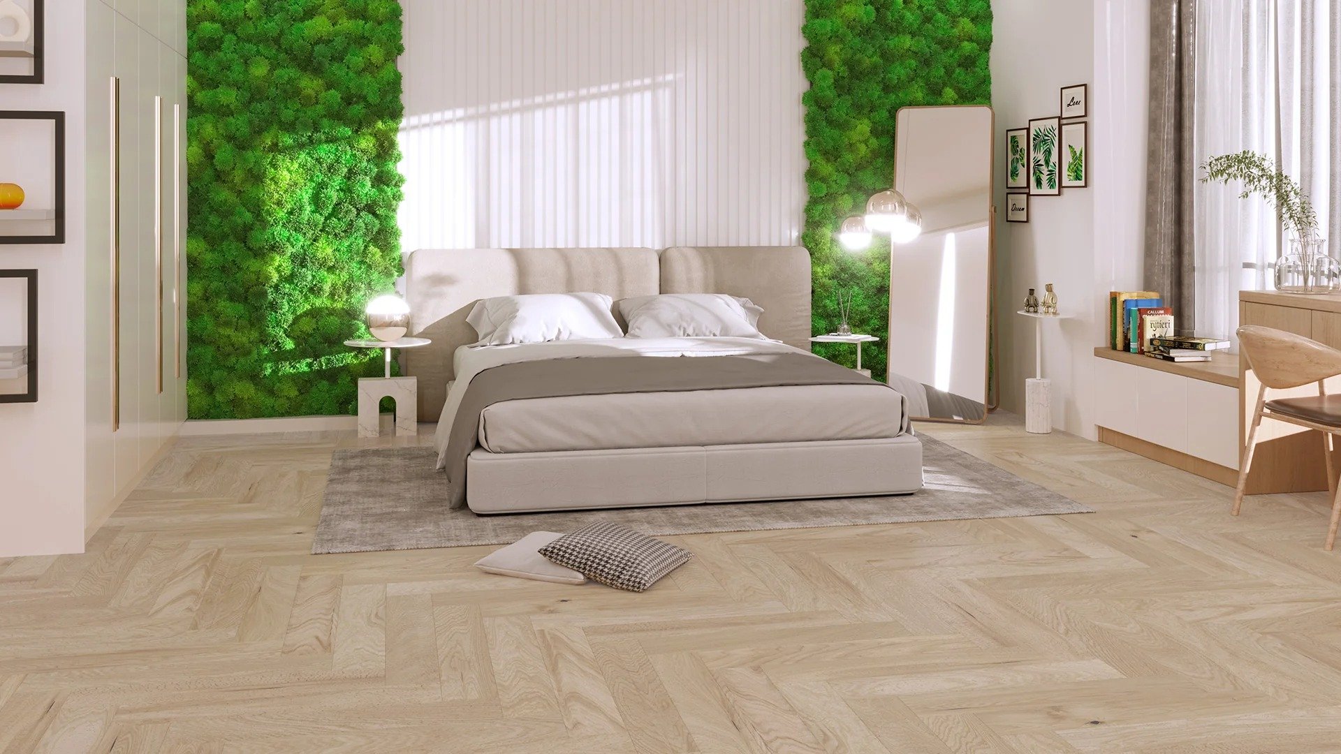 Дизайн и натуральность проявляются в каждой плашке Barlinek Дуб Balos 14х130х725 классическая ёлочка, восходящая к паркетным традициям европейских интерьеров. Динамичный рисунок образует направляющие линии которые визуально удлиняют пространство при светло-бежевом тоне и брашированной поверхности, создавая игру света и ощутимую теплоту древесины под шагами. Конструкция с толщиной 14 мм при ширине 130 мм и длине 725 мм обеспечивает выразительный масштаб плашки; точность геометрического рисунка достигается за счёт аккуратной ручной укладки что превращает пол в готовое дизайнерское решение. Поверхность лакирована УФ покрытием что упрощает уход а селекционная обработка Фэмили подчёркивает однородность оттенка; такой паркет особенно выигрышно смотрится в коридоре и прихожей и сохраняет реставрационный потенциал на длительный срок. Производство Польша.