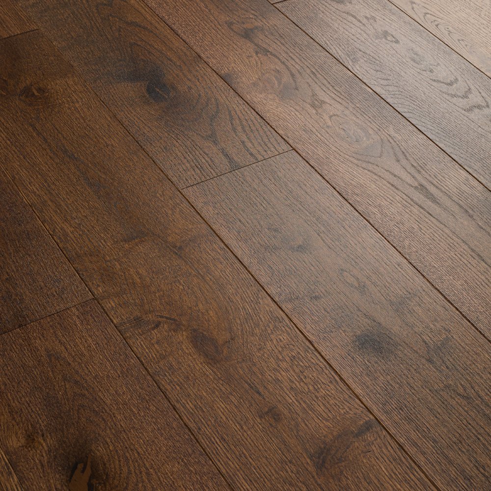 Техномассив "Дуб Бронза" — однополосная инженерная доска в тёмно-коричневых тонах с рустик-селекцией: выразительная текстура дуба, натуральные сучки и прожилки формируют тёплый, фактурный рисунок. Трёхслойная конструкция общей толщиной 14 мм с клеевым шип-пазом и фаской по четырём сторонам обеспечивает высокую геометрическую стабильность и минимальные деформации при изменениях влажности, что делает доску совместимой с системами тёплого пола при соблюдении монтажных рекомендаций. Ламели шириной 150/170 мм и длиной 400–1500 мм создают монолитный классический рисунок. УФ-лак защищает поверхность от износа и облегчает уход: регулярная сухая и слегка влажная уборка, исключение агрессивных средств. Многослойная конструкция допускает шлифовку и реставрацию при достаточной толщине верхнего слоя, что продлевает срок службы и сохраняет стабильность геометрии.