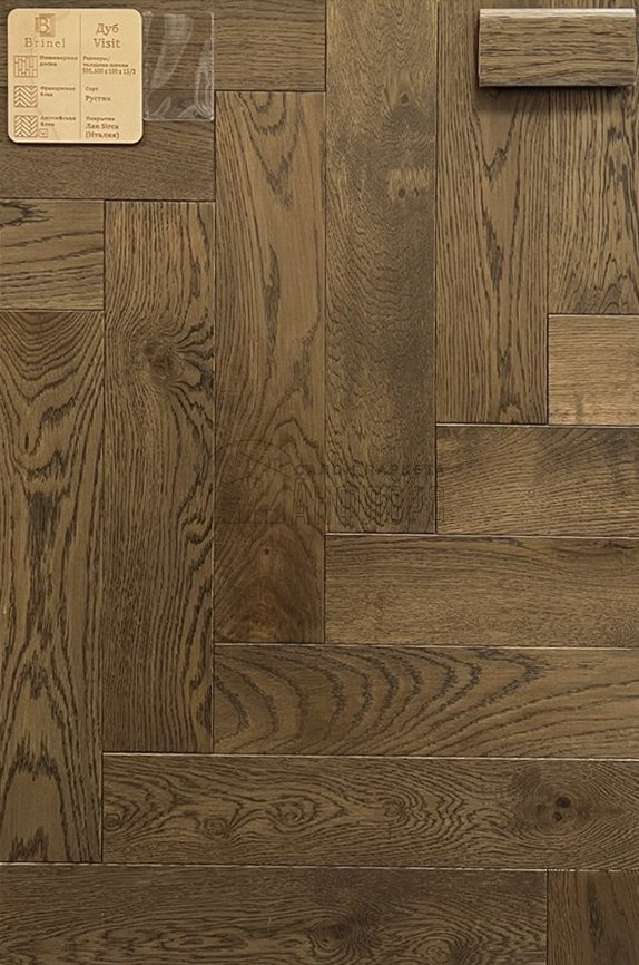 Паркет ёлка Brinel Английская Дуб Visit 15х100х500 Рустик
