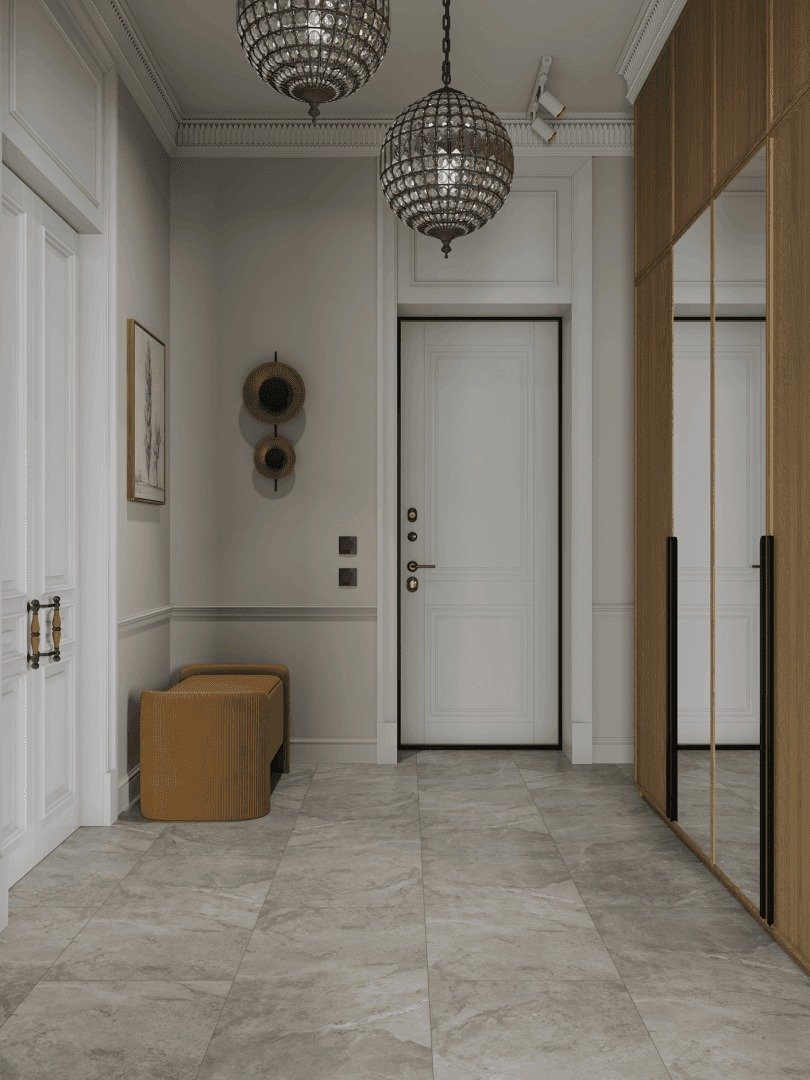 Alpine Floor ECO 26-2 Пенни — светлая серая плитка с дизайном под дерево и камень; главное преимущество — 100% водонепроницаемость. Как кварцвиниловый ламинат (виниловая плитка, кварцвинил) демонстрирует практичность и долговечность: класс нагрузки 43 обеспечивает высокую стойкость к износу, толщина защитного слоя в официальных характеристиках не указана и требует уточнения. Конструкция панелей: общая толщина 2.5 мм, размер 470×940 мм, гладкая поверхность, фаска с четырёх сторон, страна производства — Корея. Тонкий формат минимально повышает уровень пола при настиле; замковая система не заявлена в описании, совместимость с тёплым полом следует проверять у поставщика. В эксплуатации материал прост в уходе: легко очищается влажной уборкой, устойчив к бытовым воздействиям и большинству чистящих средств при соблюдении рекомендаций, подходит для укладки в помещениях с повышенной влажностью — кухни, санузлы, прихожие; экологические характеристики рекомендуется уточнить по сертификатам.