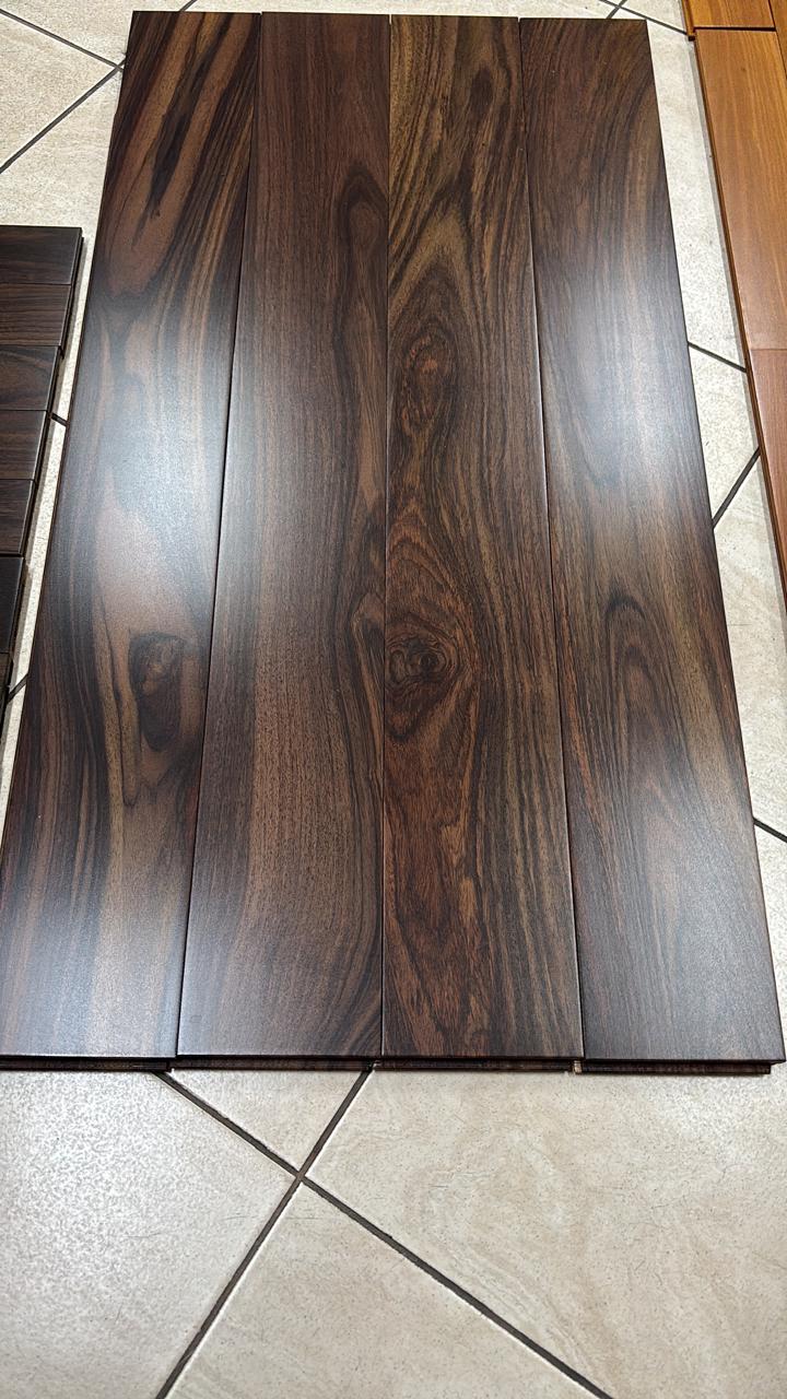 Классика и натуральность в палисандровом оттенке: Komofloor, модель "Палисандр 15х75х350-900 Лак UF Экстра" - штучный паркет с гладкой коричневой поверхностью, чёткой текстурой волокон и выраженным природным рисунком древесины, который подчёркивает историческую ценность массивного пола. Формат плашки 15x75 мм при длинах 350-900 мм даёт мастеру широкий простор для создания традиционных и авторских узоров - ёлка, плетёнка, чеканка и сложные комбинированные схемы укладки. Цельная древесина палисандра обеспечивает естественную тепло- и звукоизоляцию; формат плашки допускает применение классических пазогребневых методов для плотной стыковки и аккуратного шва. Толщина 15 мм допускает реставрацию циклёвкой в несколько приёмов (обычно 1-2 раза в зависимости от состояния), что обеспечивает длительный срок службы при бережном обслуживании. Подходит для жилых и представительских помещений с контролируемой влажностью; уход - сухая или слегка влажная уборка и периодическое восстановление лакового слоя.