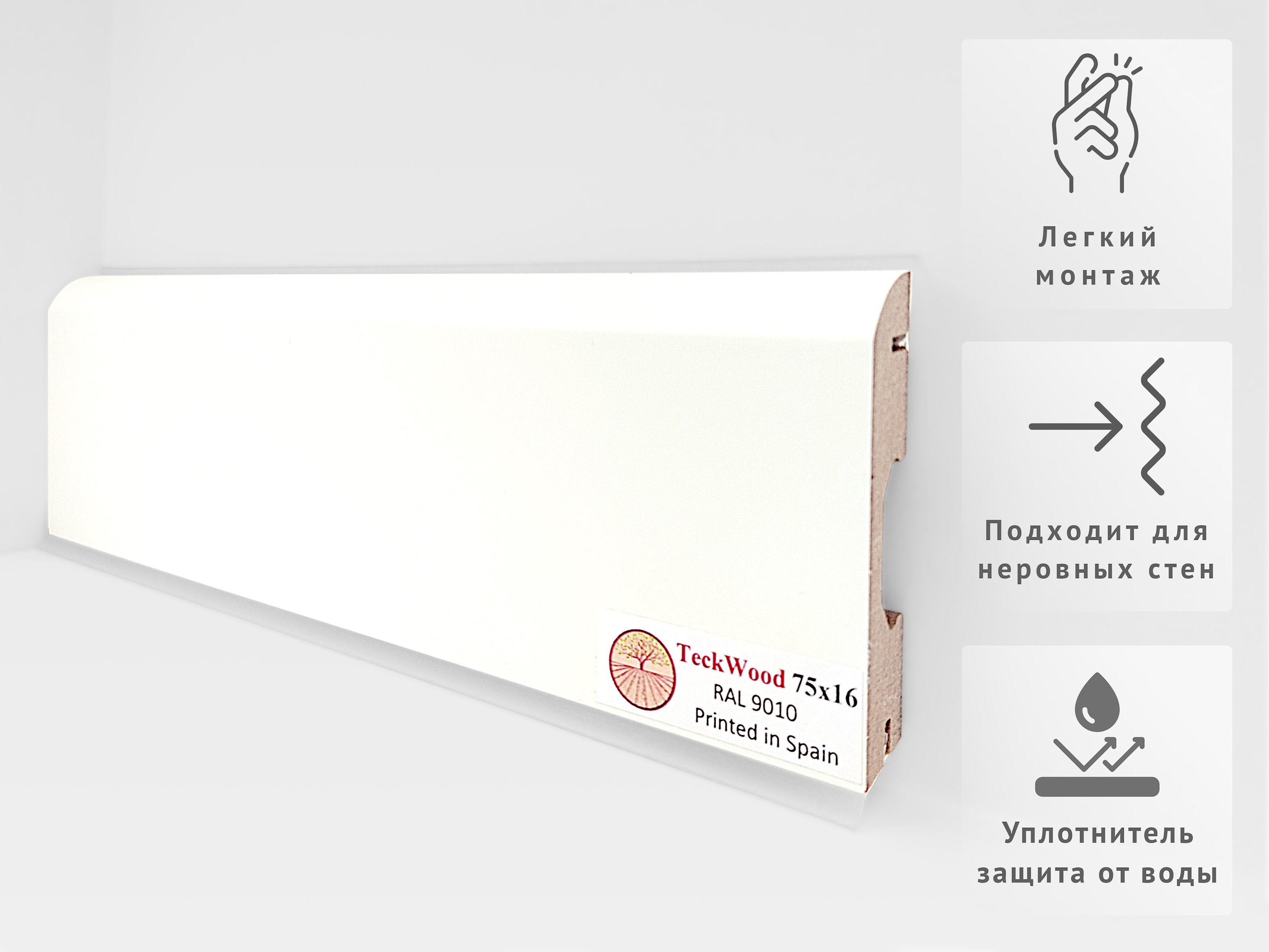 Плинтус TeckWood Цветной 75x16 RAL 9010